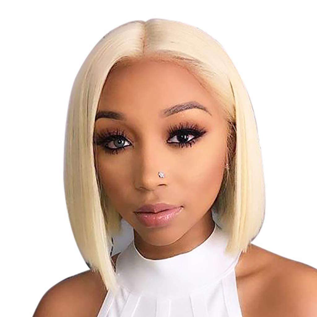 Short straight human hair blend wigs 8 inches.
